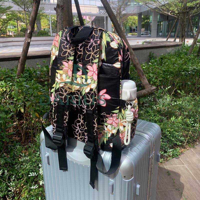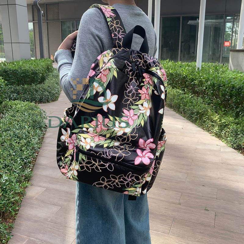 Waterproof lightweight Tyvek backpack with stylish print, duffle sleeve and multiple pockets. Customized patterns are acceptable. Perfect for travel and daily commuting.